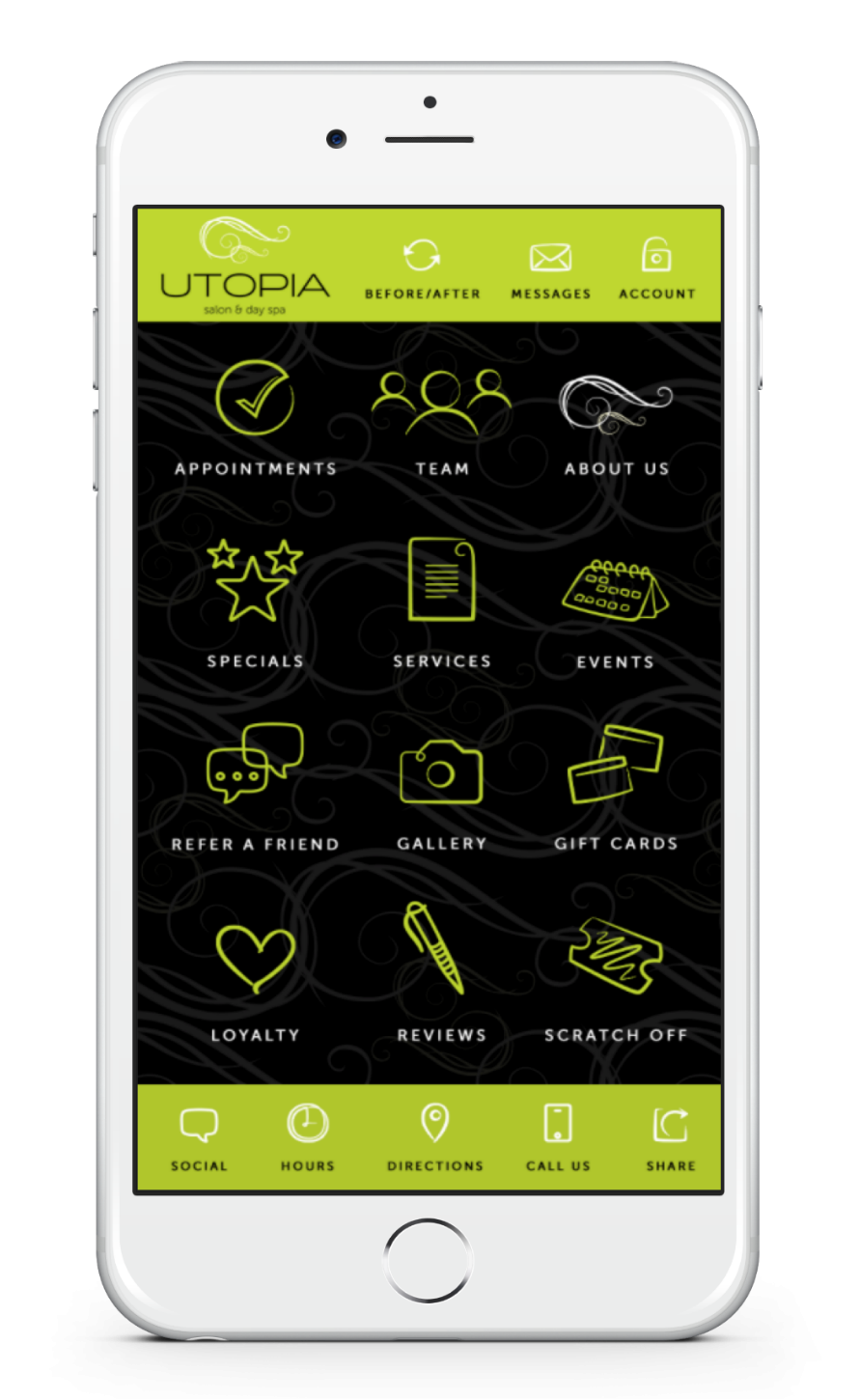 At Utopia Salon and Spa, we’re dedicated to helping you feel and look your best...for life!As part of that commitment, we’ve designed our free mobile app for convenience and fun. You can book and manage appointments anywhere, anytime, right on your mobile phone. And the app isn’t just for appointments....